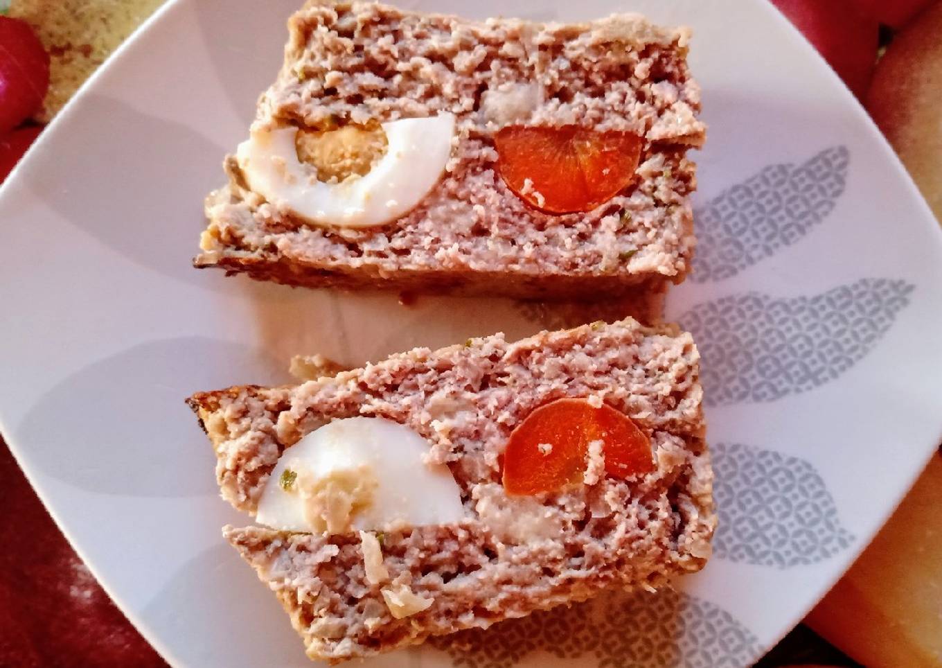 - Finalmente en un molde de pan enmantequillado, colocamos una capa de nuestra preparación. Acomodamos la zanahoria y los huevos cortados por la mitad y tapamos con otra capa de la preparación. Llevamos a horno en máximo durante 35 o 40 minutos (dependerá de la potencia del horno) hasta que esté dorado.